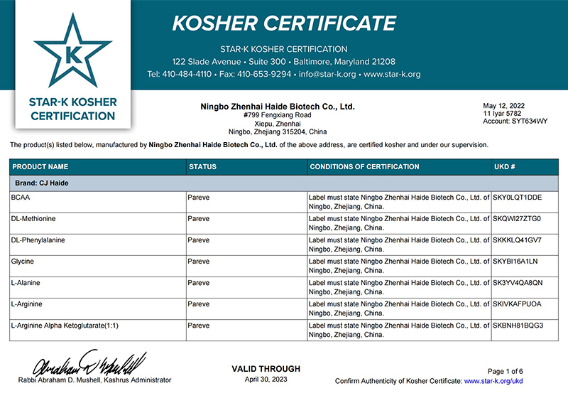 寧波市鎮(zhèn)海海德生化科技有限公司秉承“質(zhì)量為本,真誠守信”的經(jīng)營方針,海德尊崇“踏實(shí)、拼搏、責(zé)任”的企業(yè)精神,為以合作、共贏,開創(chuàng)的經(jīng)營理念,創(chuàng)造良好的企業(yè)環(huán)境;持續(xù)穩(wěn)定地為全世界客戶提供高品質(zhì)的氨基酸產(chǎn)品!